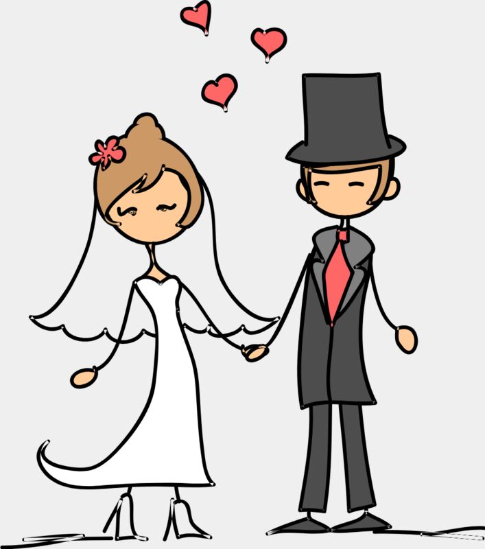 Cartoon Wedding Groom Bride Holding Hands 12